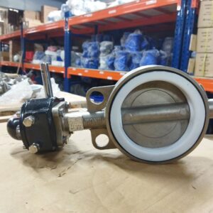 Van bướm toàn thân inox hoặc van cánh bướm inox vận hành bằng tay nên khi thao tác đóng mở nhanh, toàn thân van bướm làm bằng chất liệu inox 304, 316, kết hợp với gioăng teflon làm kín tạo độ bền và chắc chắn cho sản phẩm khi sử dụng trong môi trường có hoá chất và nhiệt độ cao.